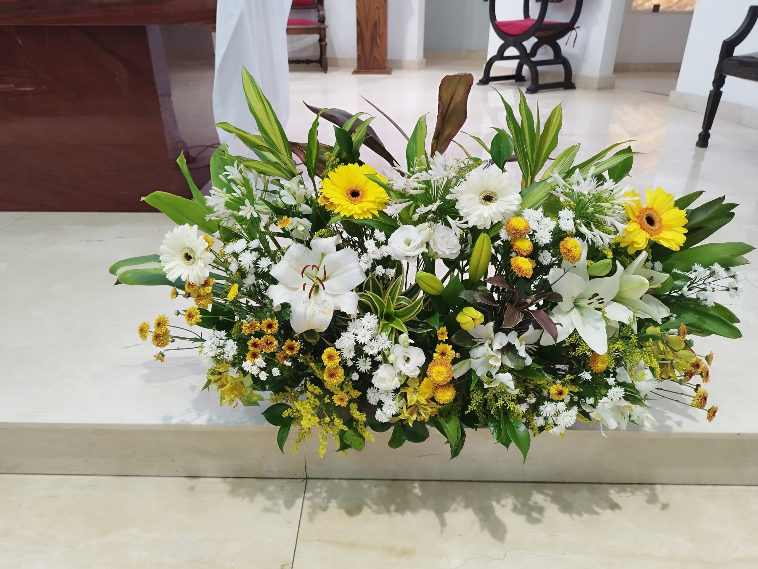 Arranjos com flores sortidas e folhagens